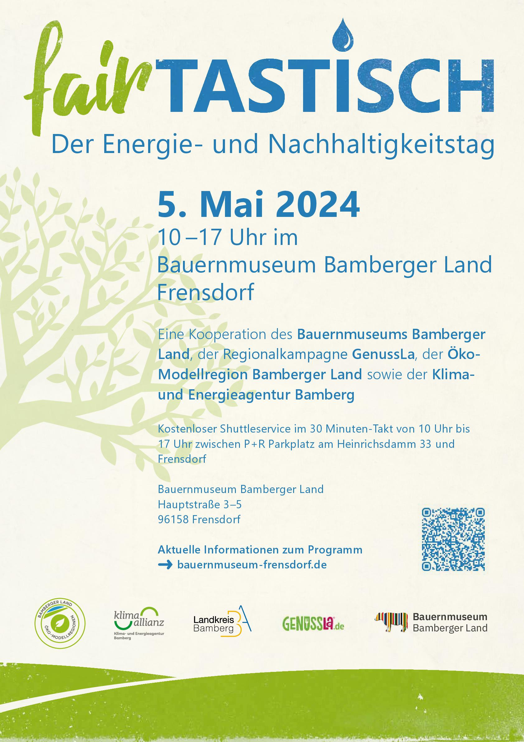 Für viele Bürgerinnen und Bürger gibt es keinen Zweifel: Nachhaltigkeit ist das Gebot der Stunde: Sind wir es folgenden Generationen nicht schuldig, zukunftsfähiger zu leben? Aber wie geht das genau? Wo fängt Nachhaltigkeit an und wie kann jeder Einzelne den Alltag bewusster gestalten? Antworten auf diese drängenden Fragen bietet das breitgefächerte Programm des Energie- und Nachhaltigkeitstags „Fairtastisch“, zu dem am 5. Mai 2024 von 10:00 bis 17:00 Uhr das Bauernmuseum Bamberger Land, die Regionalkampagne Genussla, die Öko-Modellregion Bamberger Land sowie die Klima- und Energieagentur Bamberg ins Bauernmuseum Bamberger Land nach Frensdorf einladen.