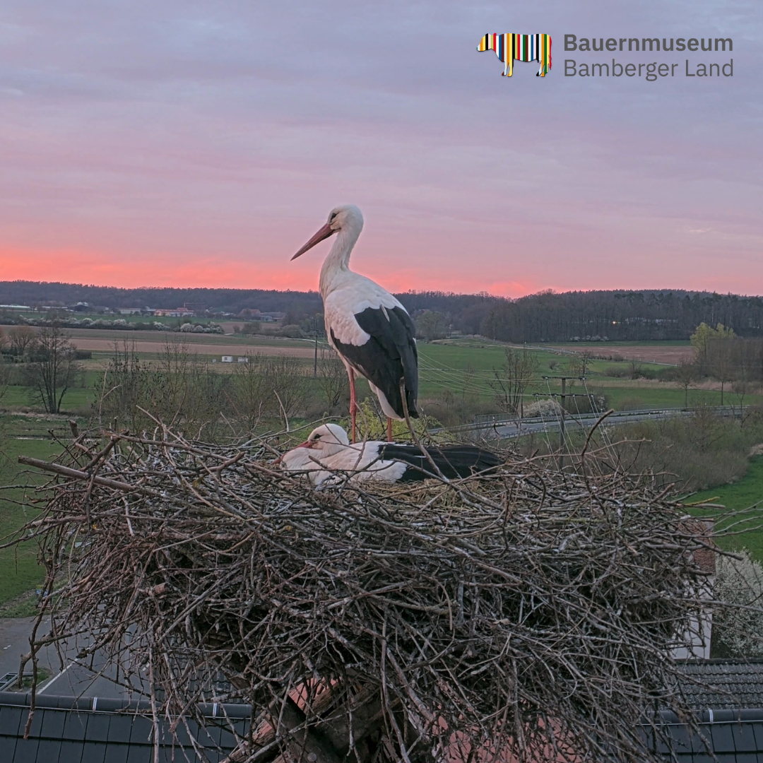Die Live-Bilder aus dem Storchennest sind auf der Homepage des Museums unter www.bauernmuseum-frensdorf.de abrufbar. Das Team des Bauernmuseums Bamberger Land wünscht allen Interessierten viel Vergnügen beim virtuellen Begleiten der Storchenfamilie.