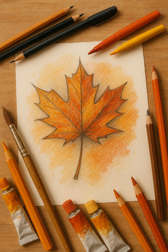 Zum Einsatz kommen: Zeichenstifte, Buntstifte, Aquarellfarben